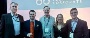 Accepting the TIABC Award are CMH representatives: Dave Butler, Patrick Bell, Will Forbes, Kathy MacRae, Matic Vecko.